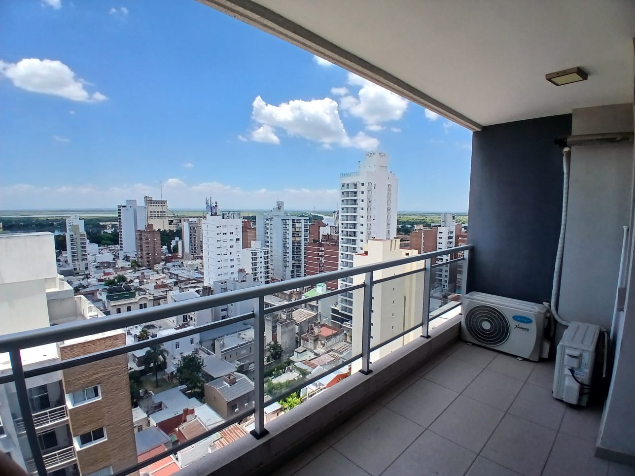 Sembrando 9: Departamento de 2 dormitorios (1 en suite) con cochera: Living- comedor, 2 dormitorios, 2 baños ( 1 en suite), balcon al frente con excelente vista y cochera. La unidad cuenta con puerta de seguridad en el ingreso a cada unidad, doble vidrios en ventanas, calefaccion por agua caliente por radiadores en sus ambientes, equipado con aires acondicionados ,cortinas y luminaria. El edificio cuenta con SUM y pileta.