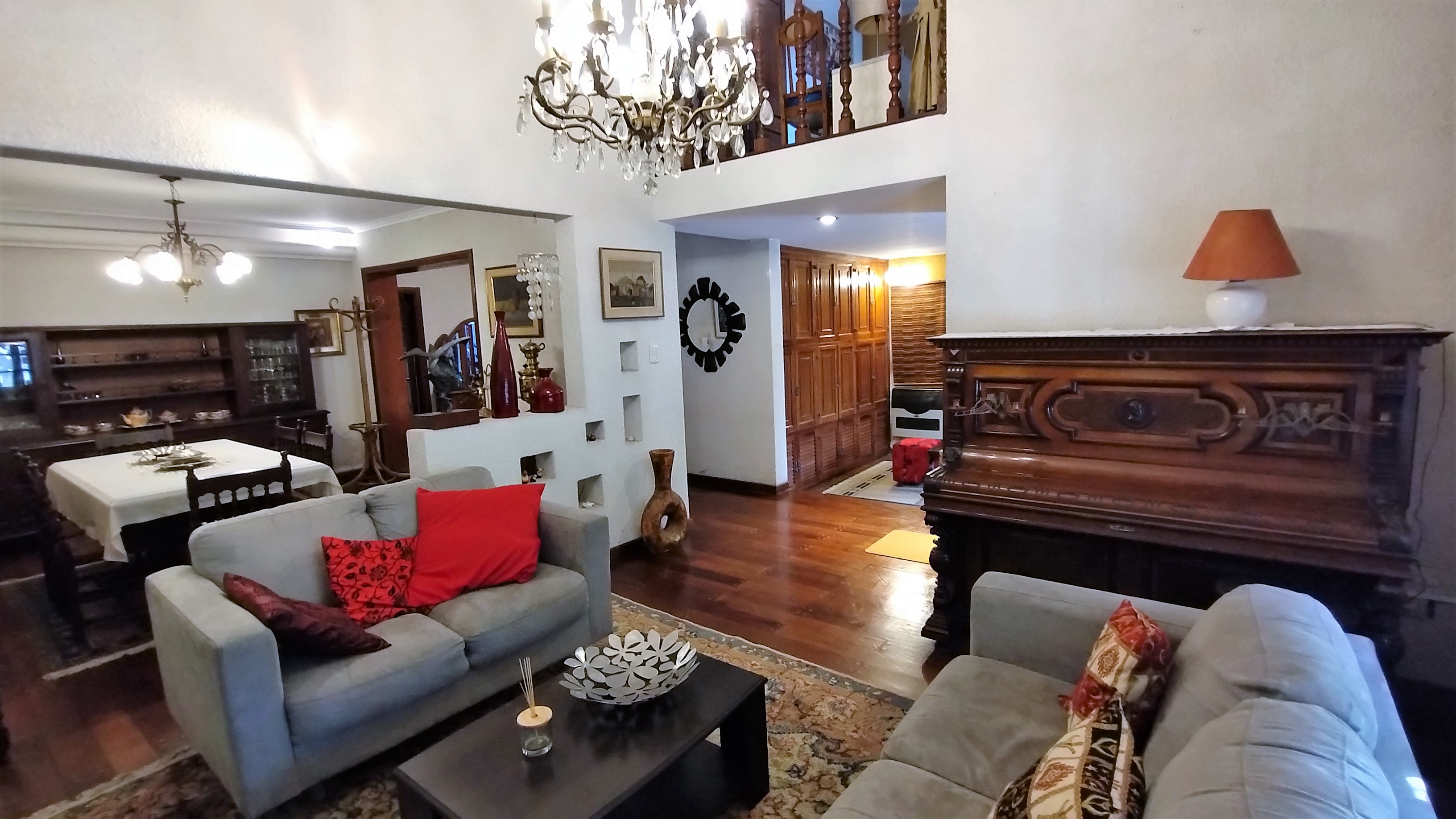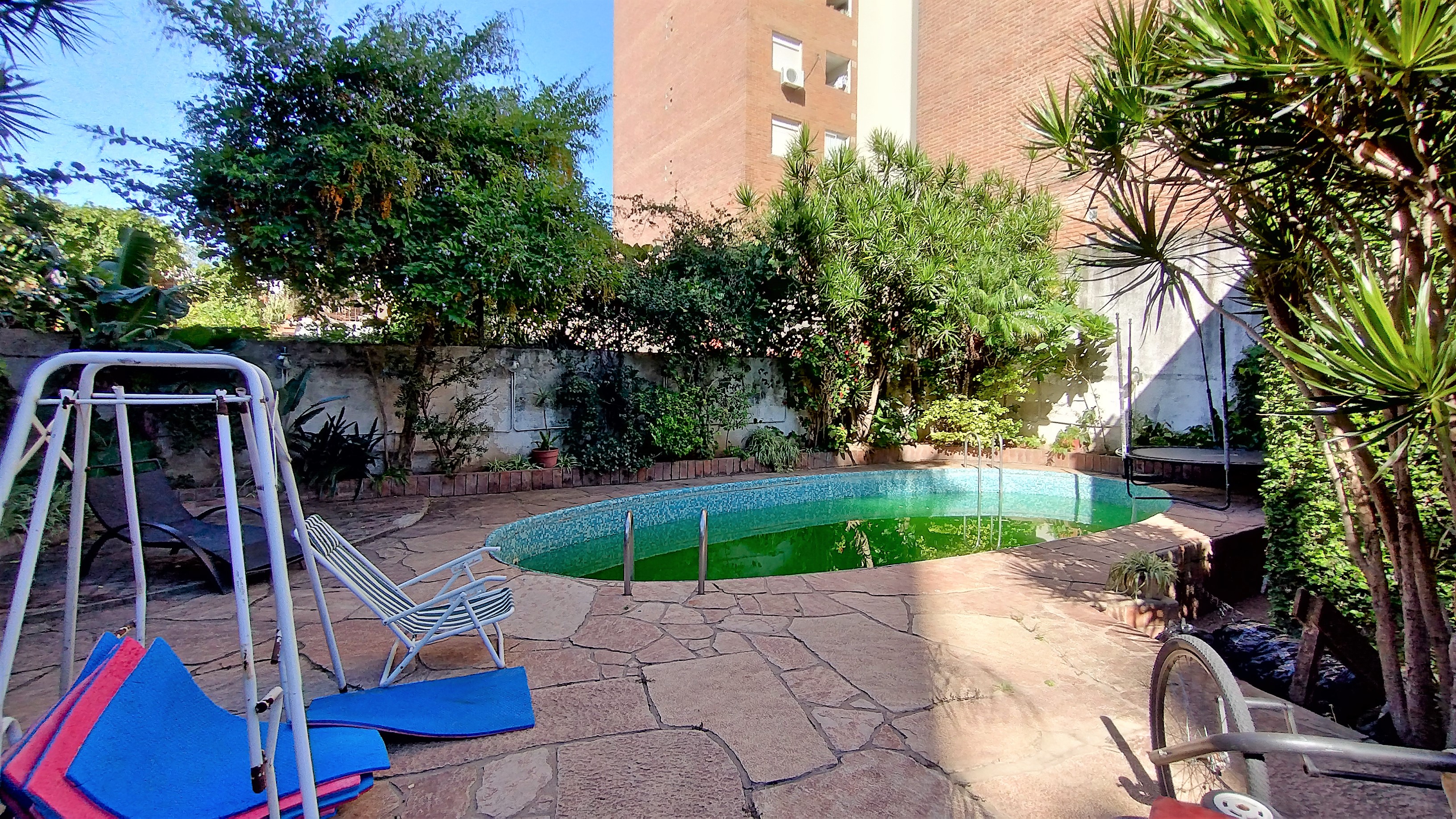 Excelente casa compuesta de: Living, comedor, escritorio, entrepiso, 2 dormitorios, 2 baños, cocina, comedor diario, amplio patio con cesped y pileta. Atras tiene otra casa de 3 dormitorios, baño, cocina-comedor y lavadero. Terreno de 8.66 x 45 + 8.66 x 15 en el sector de la pileta. Tno. Total: 520 m2 y Superficie cubierta 400 m2