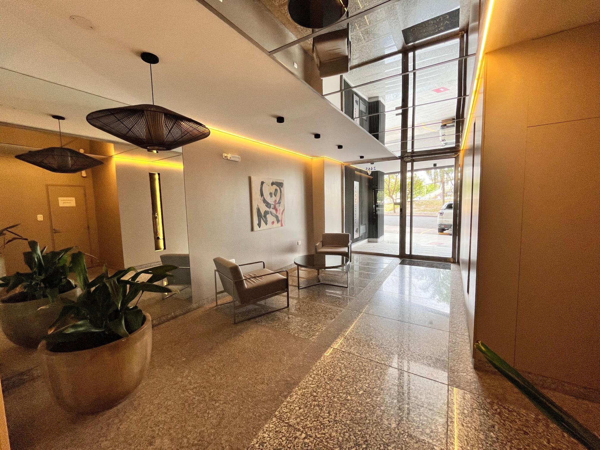 Edificio Alberdi Plaza. Piso 14. Departamento de calidad de 1 dormitorio, living comedor, cocina, 1 dormitorio con placard, amplio balcón. Amenities premium: SUM, pileta en terraza y gimnasio. Puerta de seguridad en el ingreso al dpto., calefacción por agua caliente con caldera individual, doble vidrio en ventanas, agua caliente por energía solar. Superficie exclusiva 45,61 m2