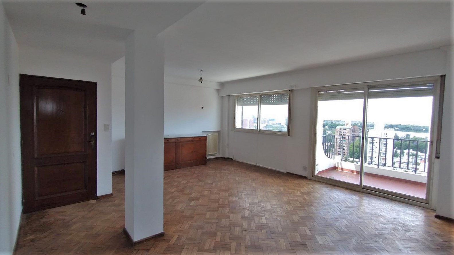 Piso único con imponente vista al este! Esta compuesto de 3 dormitorios con placares, amplio living comedor, cocina comedor, 2 baños completos, pieza y baño de servicio, lavadero y balcón al frente. Opcion de cochera.