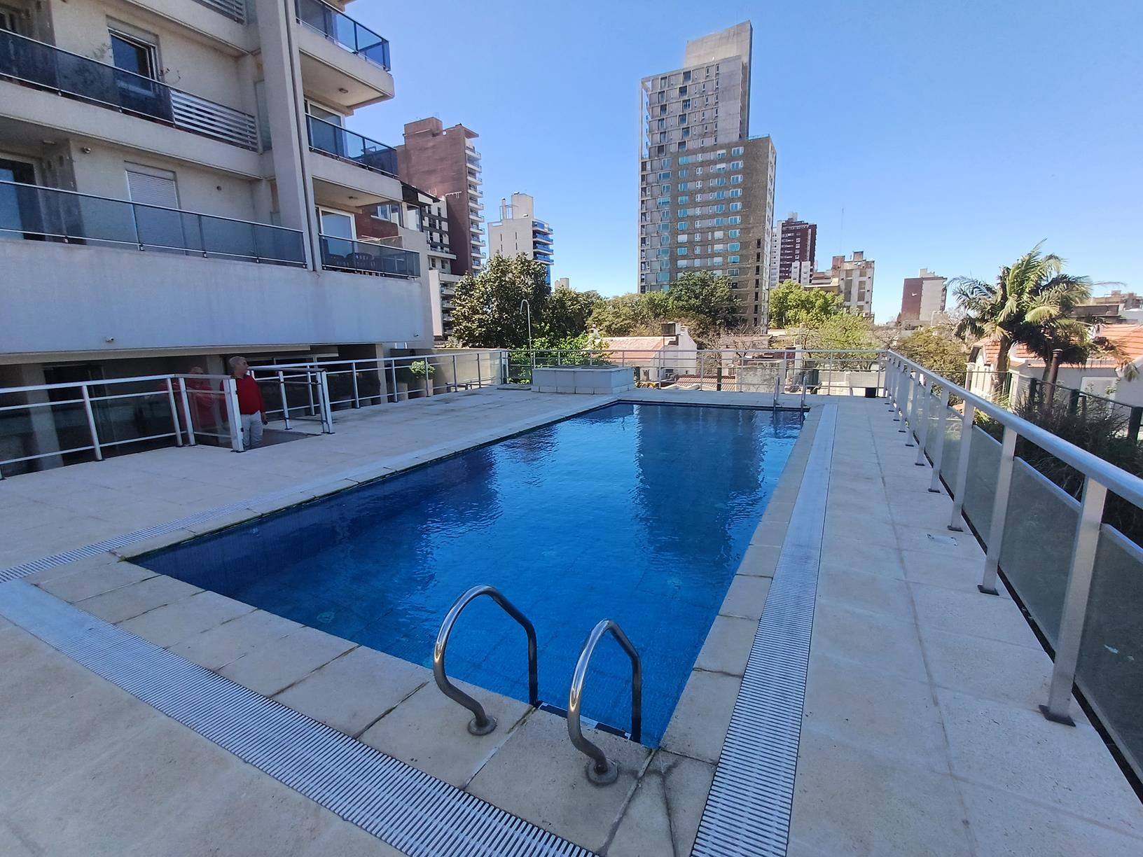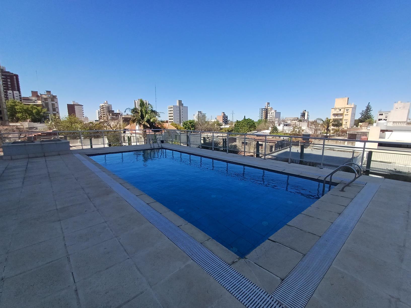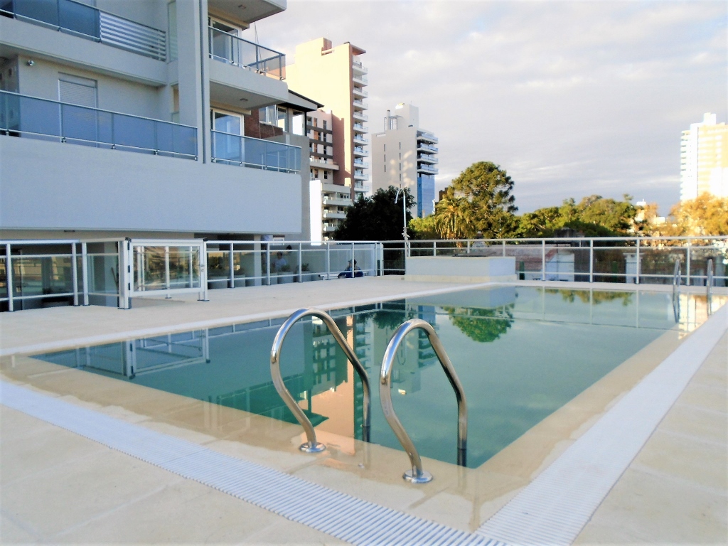 Gran vista!!! Departamento de 1 dormitorio con placard, cocina-comedor, baño, balcón y cochera cubierta. El edificio cuenta con 2 salones de usos múltiples con asadores y totalmente equipados. Gran piscina con amplio solarium!!!